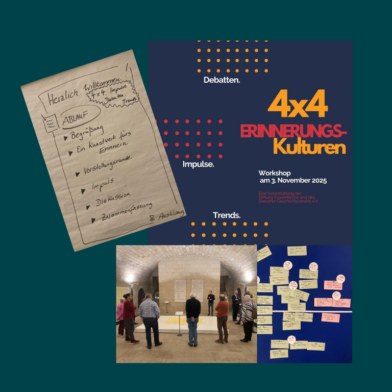 Im Rahmen unserer Workshops “4x4 Erinnerungskulturen. Debatten. Impulse. Trends.” Den wir in Kooperation mit der Stiftung Frauenkirche seit drei Jahren veranstalten, schauten wir diesmal nach Stuttgart. Hier wurde 2021 eine Koordinierungsstelle Erinnerungskultur gegründet, die sich mit zahlreichen Themen beschäftigt. Sie reichen nicht nur Fördergelder aus, sie finanzieren auch Dissertationen und sie vernetzten Aktive, koordinieren Aktionen und machen Erinnerungskultur so sichtbar. Nach einem Impuls ging es in die Diskussion, wo zahlreiche Fragen gestellt wurden. Herzlichen Dank an Herrn Serdarusic für den Einblick in seine Arbeit.