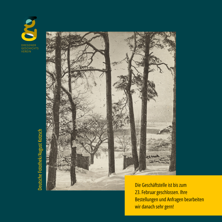 Die Geschäftsstelle ist bis zum 23. Februar 2026 geschlossen. Ihre Bestellungen und Anfragen beantworten wir danach sehr gern! Bitte beachten Sie, dass in dieser Zeit nicht versandt wird. Damit die Zeit nicht zu lang ist: Lesen Sie doch gern eines der Dresdner Hefte. Diese können Sie in den Thalia-Filialen, in den Museumsshops und auch in Dresdner Buchläden erhalten.