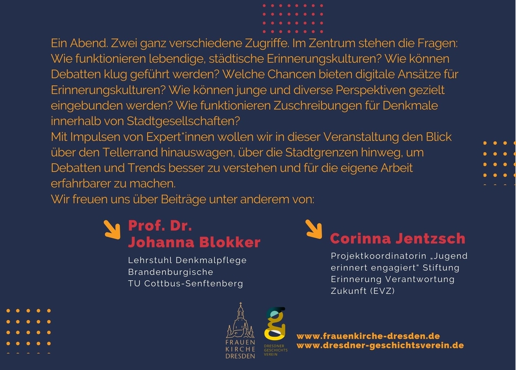 Gemeinsam mit der Stiftung Frauenkirche beschäftigen wir uns auch an diesem Jahr mit Erinnerungskultur!