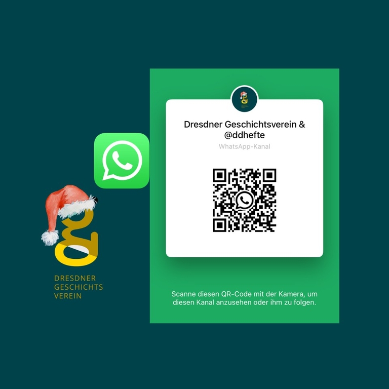 Ab heute sind wir auch auf WhatsApp zu finden. Auf diesem Kanal gibt es Informationen zur Dresdner Stadtgeschichte, zu all unseren Veranstaltungen und Aktivitäten und natürlich zum Dresdner Geschichtsverein und den Dresdner Heften. Gern weiter sagen, folgen und teilen!