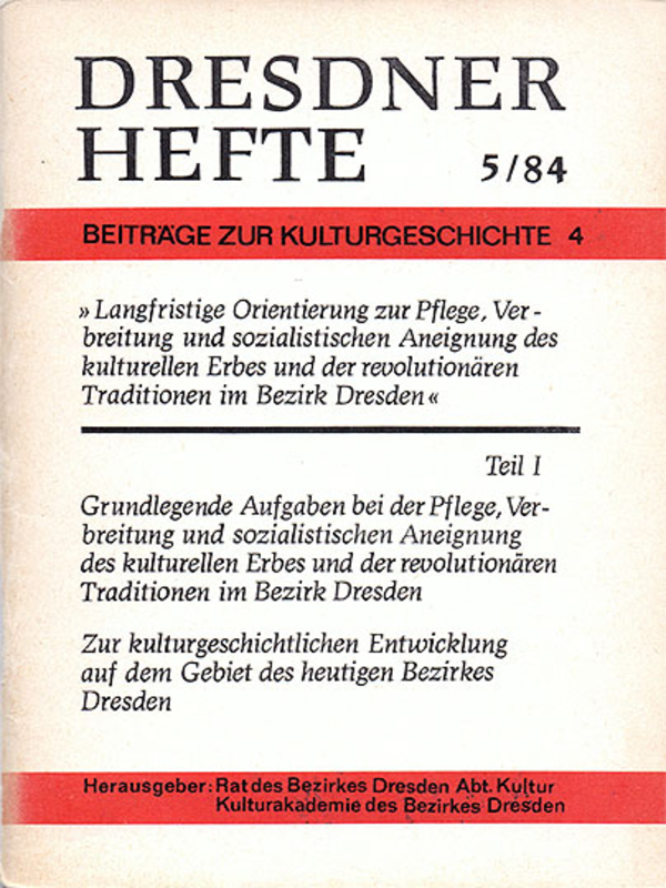 Langfristige Orientierung zur Pflege, Verbreitung und sozialistischen Aneignung des kulturellen Erbes und der revolutionären Traditionen im Bezirk Dresden