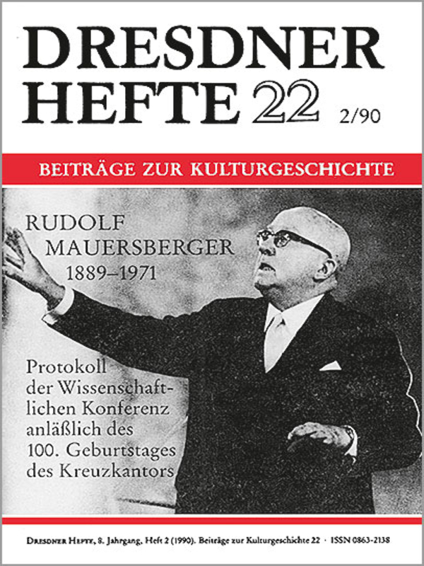 Rudolf Mauersberger 1889–1971 Protokoll der wissenschaftlichen Konferenz anläßlich des 100. Geburtstages des Kreuzkantors