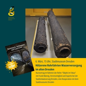 Frank Männig hat in diesem Jahr sein Buch “Kaitzbach, Schleusen und Latrinen. 800 Jahre Dresdner Entwässerungsgeschichte”, Dresdner Verlag, Hardcover, 256 Seiten, 350 Abbildungen, ISBN 978-3-912057-01-0 veröffentlicht.